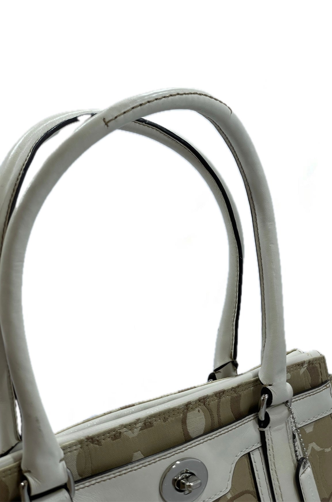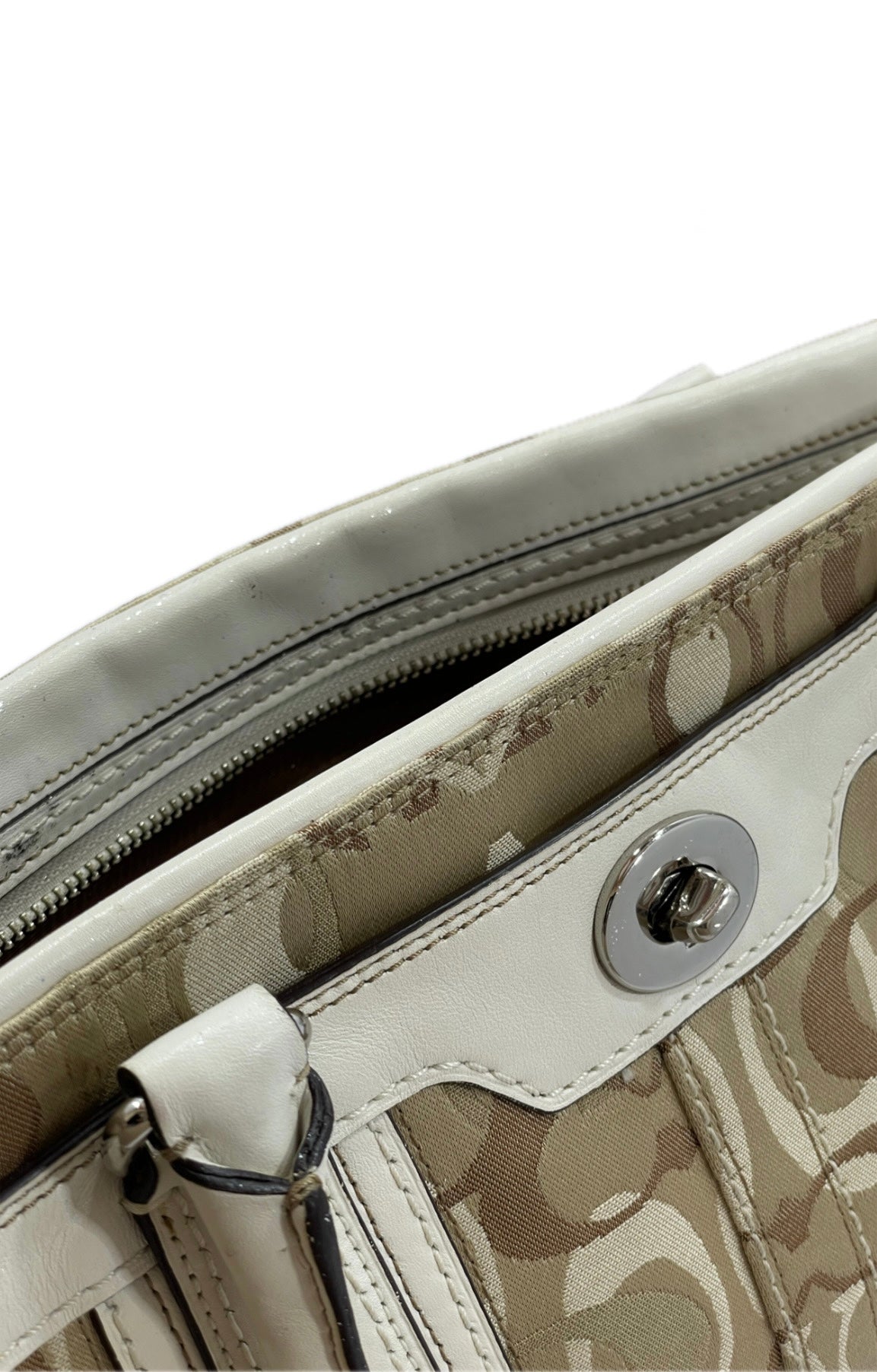 Coach Hampton Optic Brown Signature Jacquard Cream Handbag
