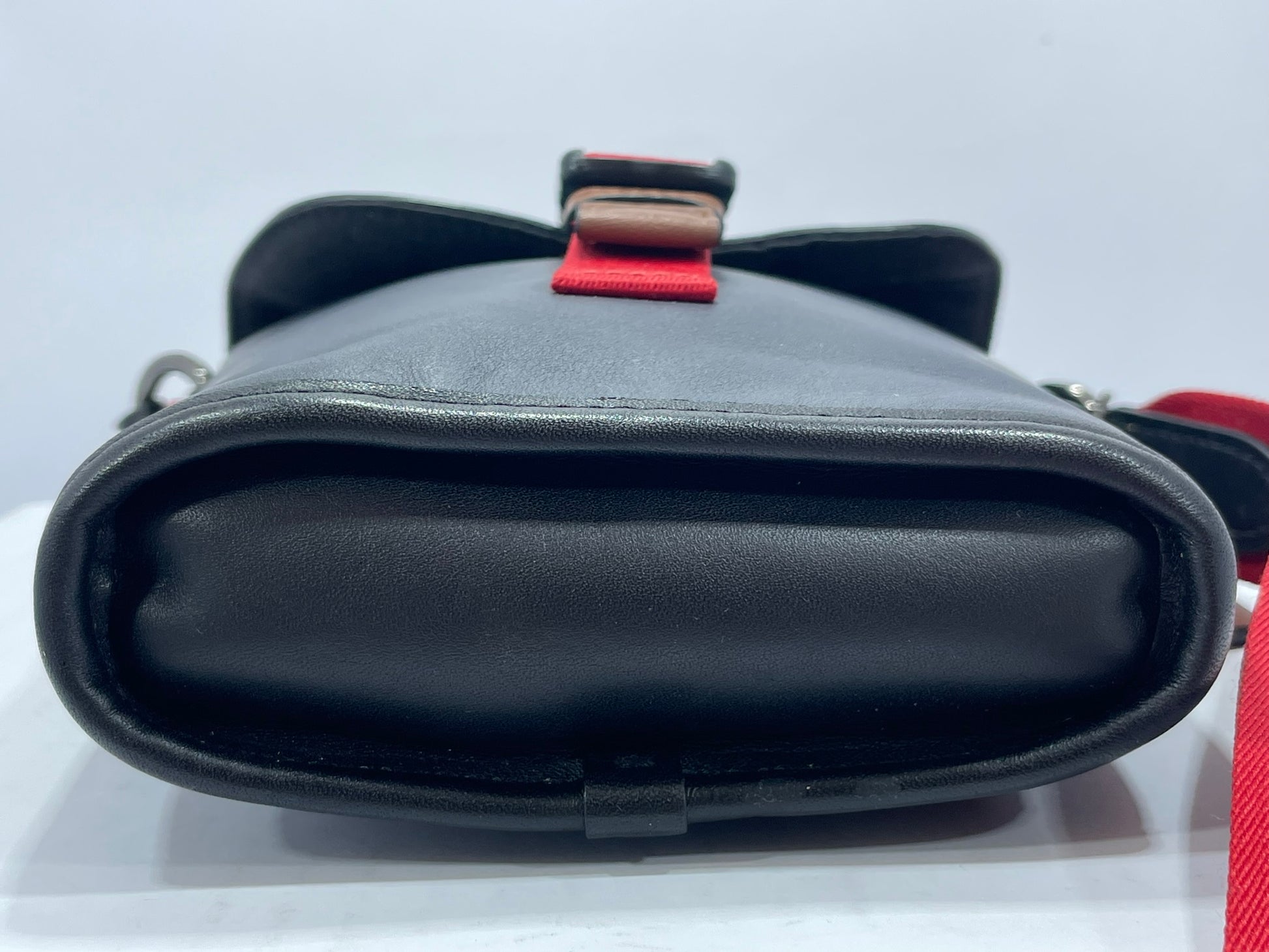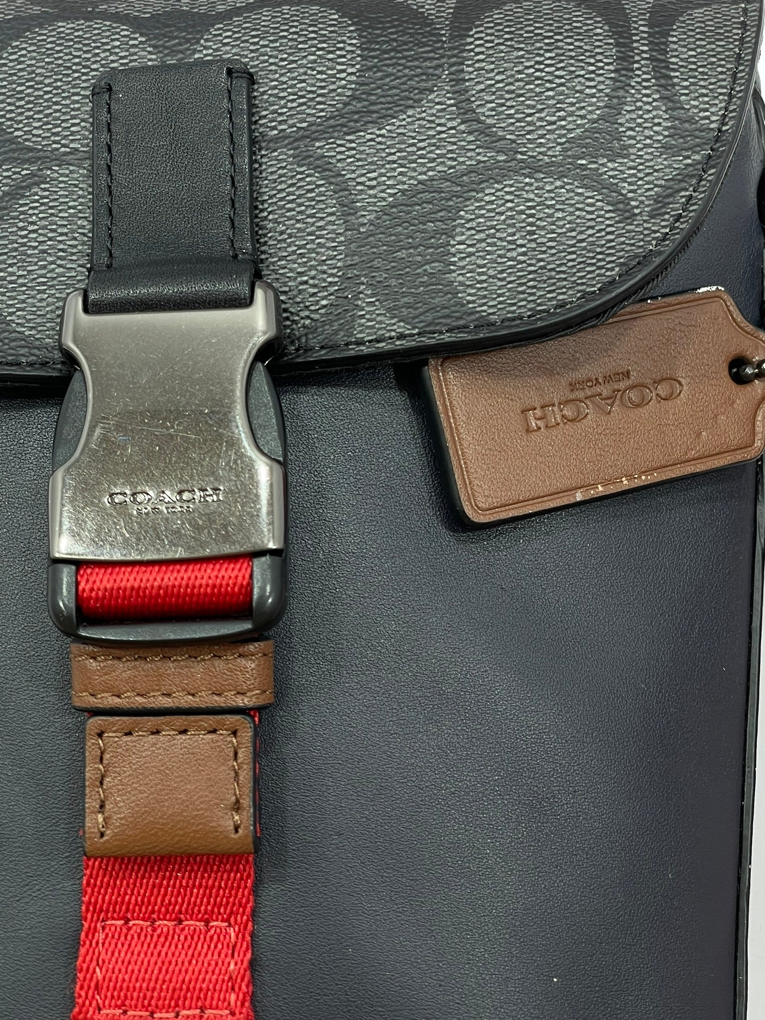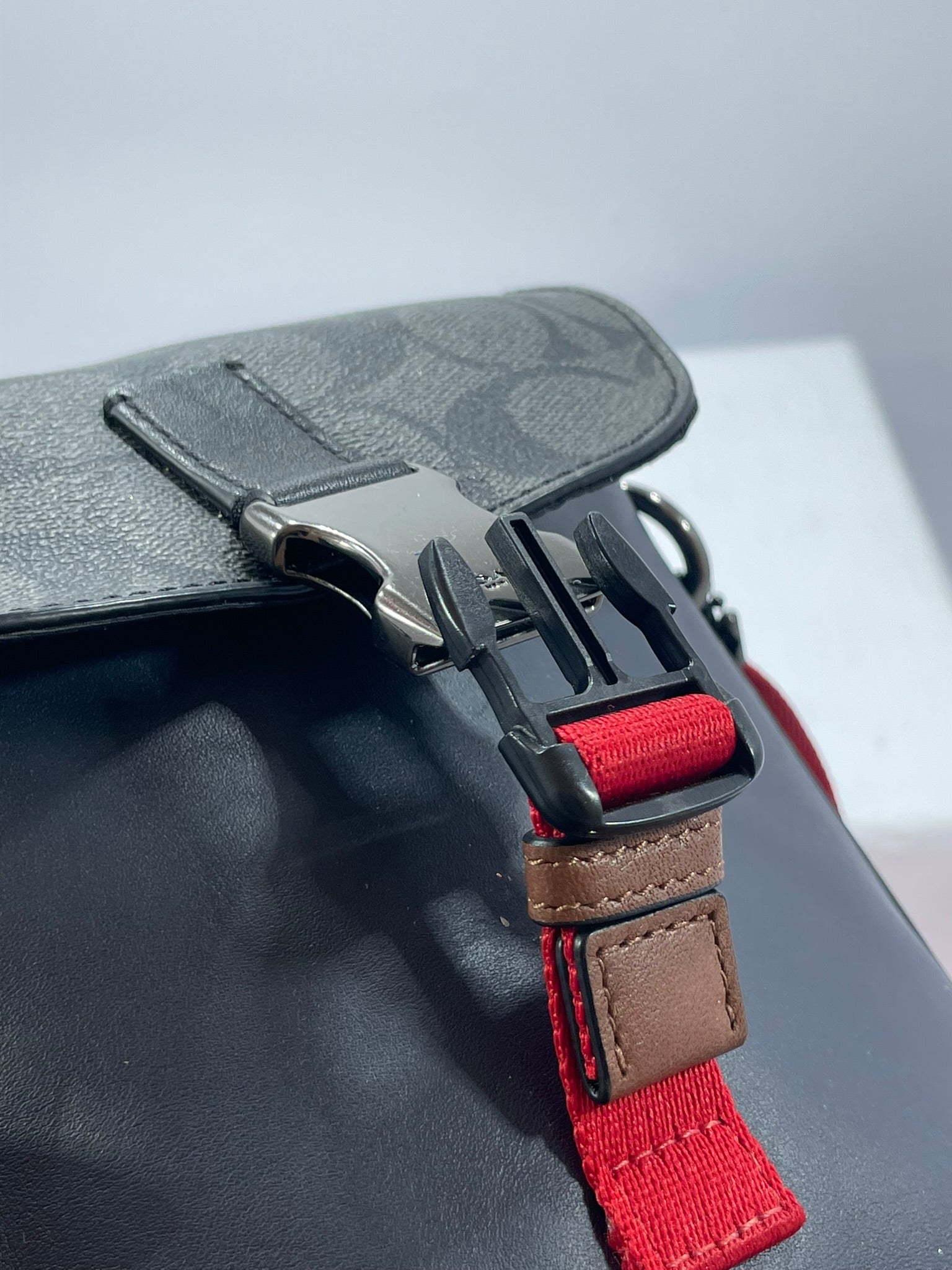 A compact crossbody crafted in signature coated canvas with smooth calf leather details. Featuring a multifunctional interior pocket, fabric lining, and speed-clip flap closure, this bag is perfect for hands-free convenience. A versatile choice for everyday wear or casual evening outings.