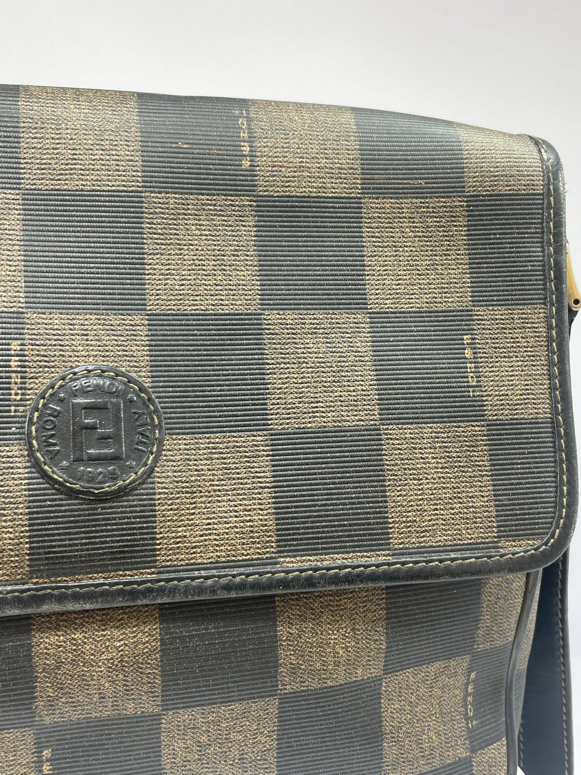 A rare Fendi edition crafted in checkered leather. Structured and stylish, this unique crossbody is a collectible piece for luxury enthusiasts.